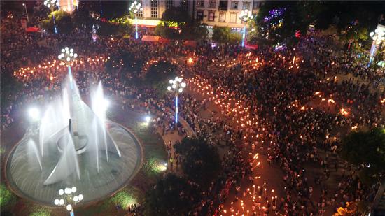 (云南石林)火把篝火现场成了欢乐的海洋(韩福云 侍伟)