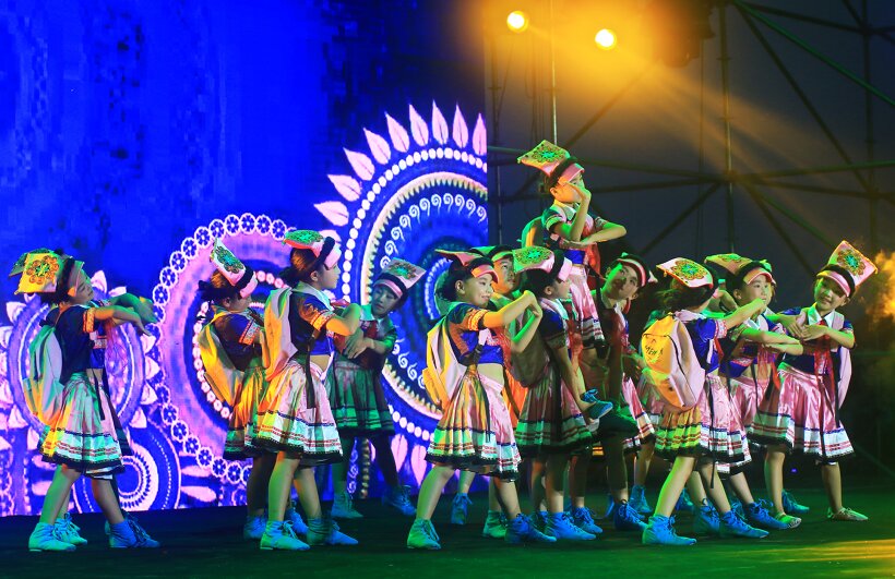 (云南楚雄)火把节庆典现场跳脚的彝族姑娘们 (贾翔 尹博林)