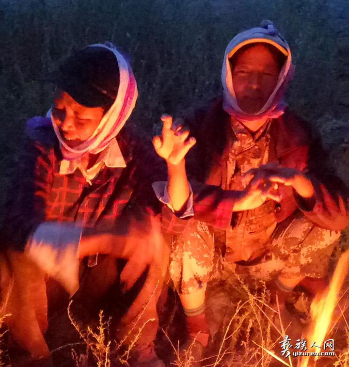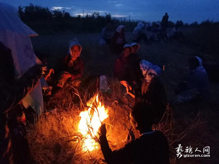 凌晨四点钟的田野 棉花地里的彝族火塘