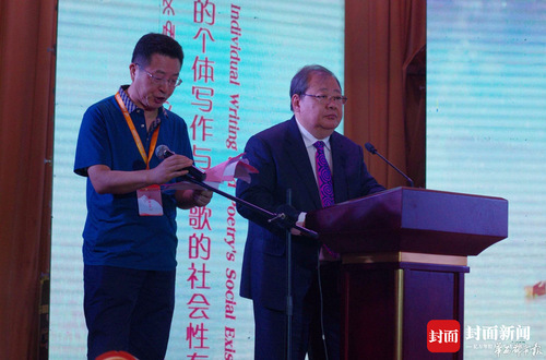 在演讲的最后,吉狄马加再次提到“光明与鹰翅的天石”这个诗意意象,“诗人朋友们,我们只要能把诗歌的火炬烧得更亮,当正义战胜邪恶成为不可抗拒的法则,那么,请相信光明与鹰翅的天石就会在我们的前方,也正因为此,我们迈向明天和未来的脚步才不会停止,永远不会停止。”