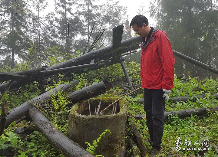 没有遇到一个人,甚至一条狗也没有,偶有几处稍平整的院坝,也长满野草,几根坍塌的房梁斜插泥土里,漏出的半截裹满苔藓,一口废弃的大缸里,经年累月的积水浑浊不堪。寂静,死一般的寂静,除了淅沥的雨滴声和间或的布谷鸟鸣。CEh彝族人网(彝人网)- 彝族文化网络博物馆