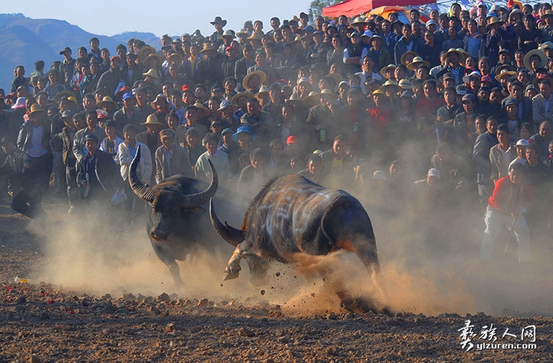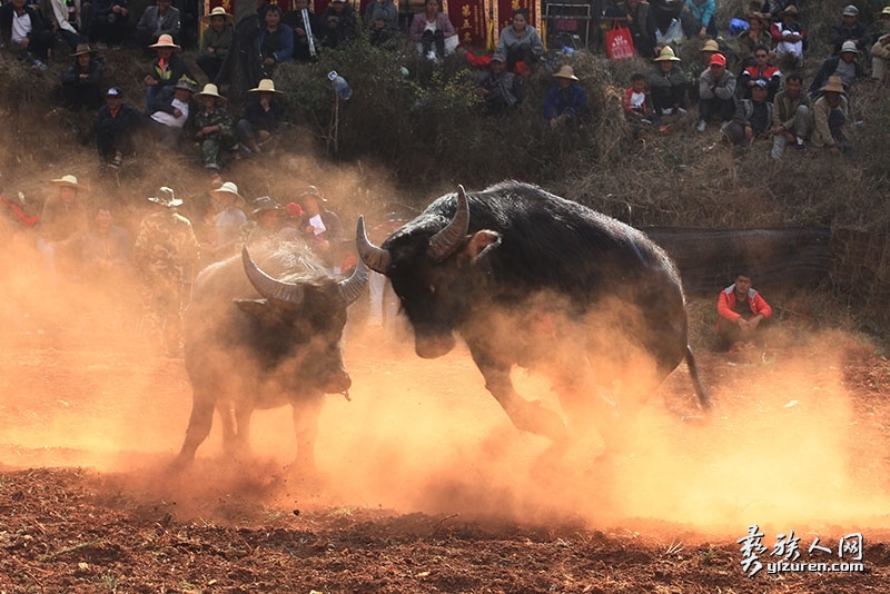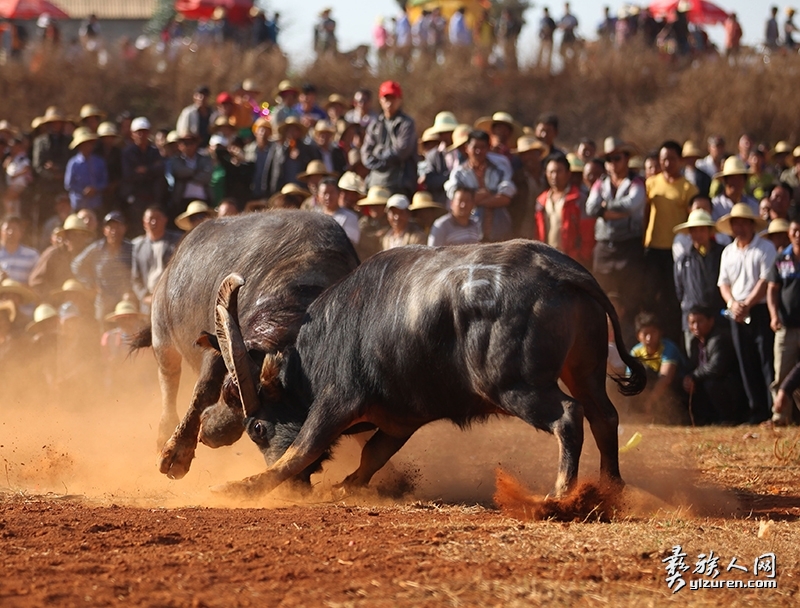 水牛相对于黄牛更膘肥体壮,拥有更长更威武的牛角,水牛力量更大,两头水牛相斗,往往能听到牛角相击的激烈碰撞声,而且水牛斗起来更追求速战速决,因此场面更加激烈精彩,观赏性更强。0An彝族人网(彝人网)- 彝族文化网络博物馆