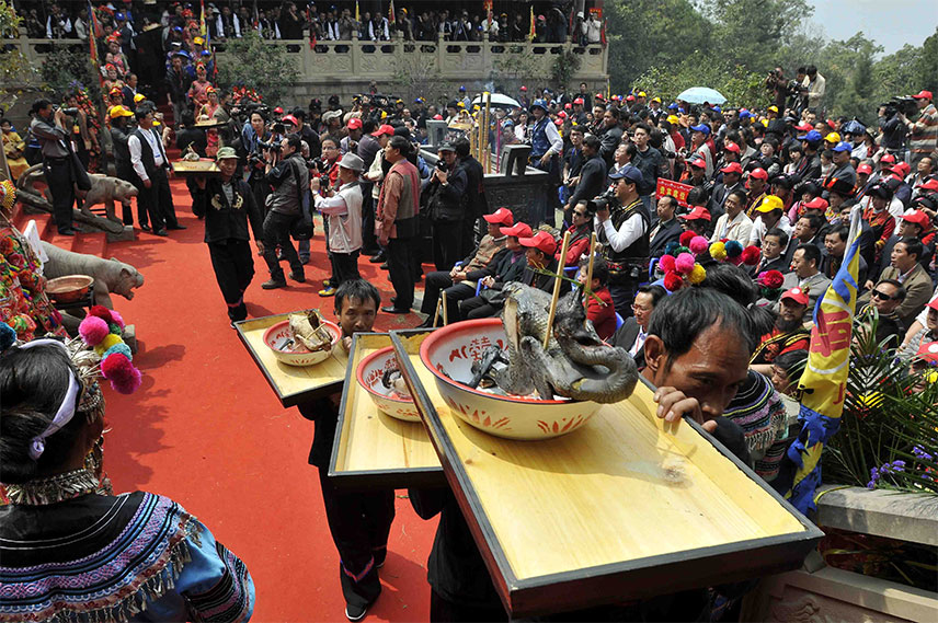 本文图文来自新浪博客-大理柳青文化传媒有限公司,图片拍摄于2009和2010年,生动展现了巍山彝族祭祖的盛况:南诏土主庙内人潮涌动,唢呐声声,礼炮阵阵,毕摩的诵经声,人们庄严的朝圣祭拜,历历在目……