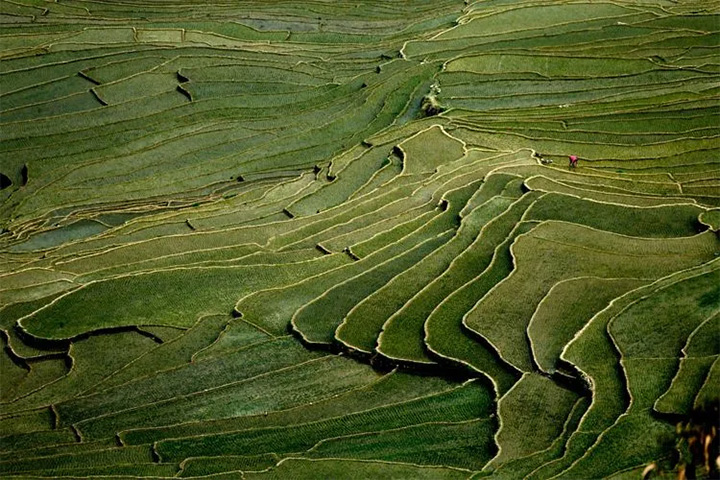 每年春夏交替的四月下旬,正好是梯田放水插秧苗的时节,也是观赏甘洛普昌梯田的最好时间。因山形变化,梯田之间的落差较大,在长达300多米的缓坡上,梯田层层叠叠,如台阶紧凑相连。梯田大小不一,陡坡处的梯田窄不足1米、最宽也不过2米,但最长的可达100多米。dqS彝族人网(彝人网)- 彝族文化网络博物馆