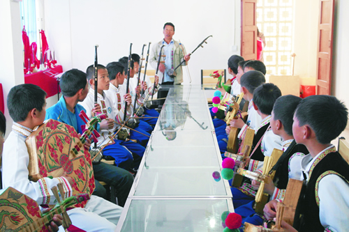 州级器乐传承人在传习所免费为孩子们教授器乐知识 。(娄作燕摄)