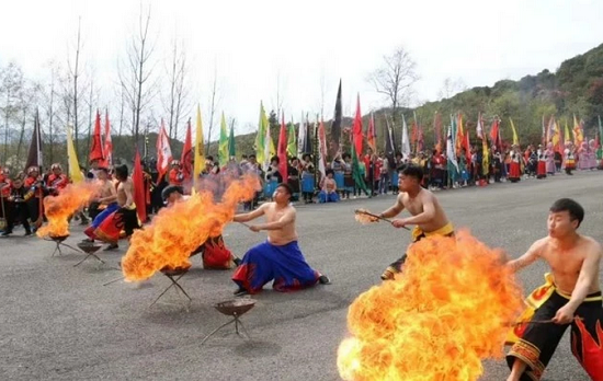 祭祀花神作为百里杜鹃最具代表性和文化性的非物质文化遗产,神秘古朴的祭花神仪式,一直备受游客和民族文化学者青睐。彝家儿女身穿盛装相聚金坡景区祭祀索玛花神,德高望重的9名布摩设席焚香、祈福诵经、献牲开祭,彝家儿女以古朴的撮泰吉、玩火、跳花神、铃铛舞、拜香等形式将彝族祭祀活动展现得淋漓尽致,让广大游客真正感受到原汁原味的彝族风俗和浓郁的民族风情。