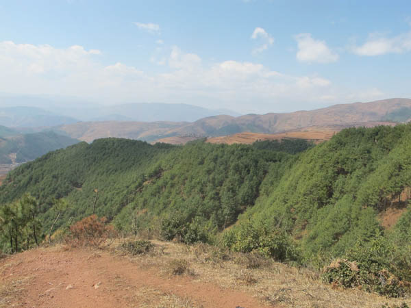 这一天,我在路上遇见两帮人,一样有趣的两帮人。上午离开玉田严尼日河南行约五六公里,过了迎面走来一群孩子,三女五男,一人背一个竹筐,一把砍刀,嬉笑着迎面朝我走来。他们望向我的眼睛里发散出毫不掩饰的好奇,他们继续笑闹着走来,不时相互眨眼,又频频把目光向我投来,走得近了,对我的出现表现出了他们莫大的兴趣却又孩子心性谁也不敢冒然上前担起打招呼的重任。