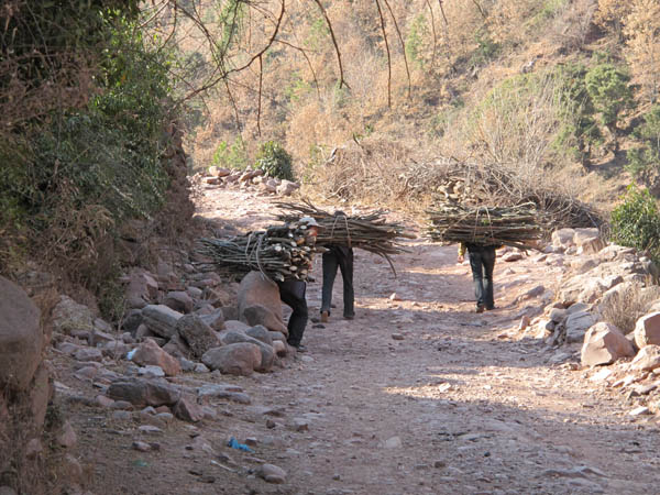 被推荐出来和我搭话的孩子叫做木乃尔布,他说自己已经十一岁了,在读小学六年级,利用周末出来和伙伴们一起到山上拣些干木材回去烧火烤,他指着路下方河岸一个台地上崭新的村子说那是他们的村子,很多人家已经住进干净的两层小洋楼了,但是冬天还是要到山上拣些木材在家里烧了烤“没有火,冬天就会很冷,电子炉每家都有,但是不好烤,烤了脚杆烤不到背脊”。