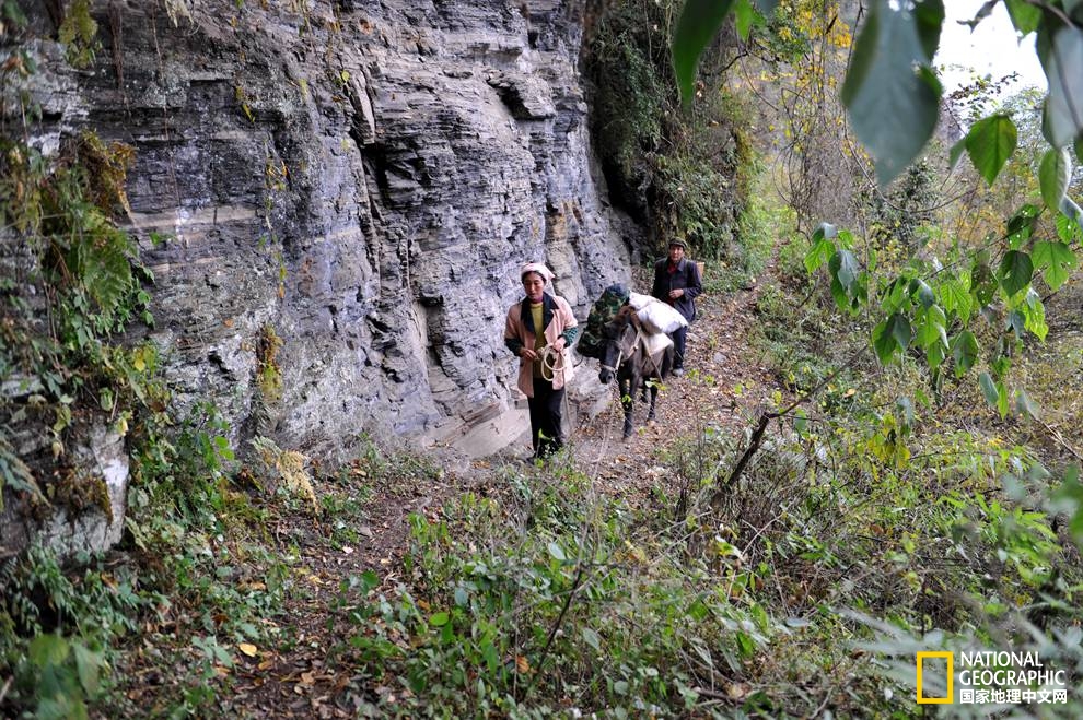 古路村,山高路险。村民下山,过去都是从山里采来像锄把粗的野藤子,把它拴在上面的树桩上,拉着野藤子往下移,而且身上还要背上几十、百把斤的山货,用于换盐、布等日用品。稍不留神,就会坠入陡崖,死无葬身之地。直到修筑成昆铁路时,工程队看到他们就像猴子一样在悬崖上荡来荡去,用钢板在“一线天”处焊起了一道道钢梯子,古路村的人才结束了在树藤上“荡秋千”的历史。2003年,政府出钱,村民出力,在绝壁上凿出了一条六七十厘米宽的路,便于村民下山采购物资,当地人称之为骡马道。这是村民与外界交流的唯一通道。最近几年,该路又进一步拓宽,增加了安全措施,村民上下山安全多了,到古路村徒步探险、观光旅游的增加了不少。