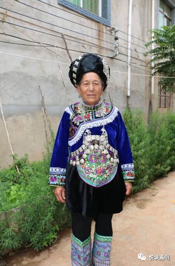 机缘巧合,一步入村庄,便偶遇盛装出行的大妈,出来逛门子,但见:“头上戴着黑色银饰包头,穿一件五彩右衽大襟衣,下穿一条盘花宽脚裤,登着青缎绿底绣花鞋”; 让人不由得对彝族服饰产生浓厚的兴趣。我们一行人急忙赶了上去,同大妈拉起了家常。