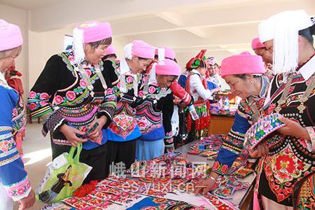 刺绣能手云集摆依寨交流学习技艺