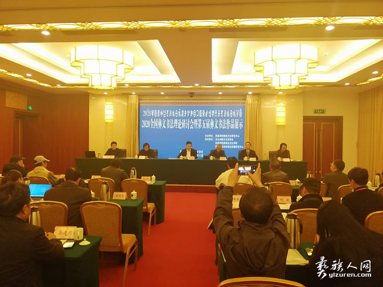 2020年11月7日上午,由四川省社会科学重点研究基地—彝族文化研究中心主办的“2020全国彝文书法理论研讨会暨第五届彝文书法作品展示”学术会议在凉山彝族自治州邛海宾馆新会议中心隆重召开。参加会议的有来自北京、云南、贵州以及四川省内各地的50余位彝文书法家和书法界杰出代表。
