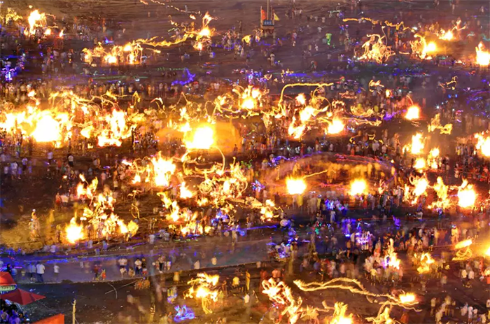 火把节虽然是官方举办、企业运作、群众参与,但因为民族节日放假时间通常和工作时间冲突,很多外出务工的人员根本没有机会赶回家。另外,随着旅游业的发展,为了满足游客的需要,火把节从最初的乡间田野转移到凉山州府西昌市,从最初单纯的民间习俗演变成了今天的盛大节日,火把节的主题被各种博览会、投资洽谈会、选美大赛取代,渐渐流于世俗化、商业化。而在真正的彝族聚居区会提前举办火把节,这样就可以避开演出高峰,把时间、人员和表演机会让给西昌市火把节。因交通和城市基础设施的压力,西昌市国际火把节当天,大多彝族民族主体都在山上的家里。本该成为火把节活动的主体反而成为自己民族节日的看客和“他者”,众多外来的异域民族者却成了节日的主要参与者。