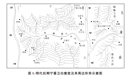 白鹿营所在的四川冕宁县位于大渡河南岸。发源于该县北部的安宁河向南流经今西昌、德昌、会理、盐源等县市,最后注入金沙江。历史上,安宁河一线,东有大凉山罗罗(彝族),西有雅砻江番部(藏族),是沟通川滇、控扼番罗的战略要地。因此,明朝初年沿着安宁河流域自北向南设有越嶲(今越西县)、宁番(今冕宁县)、建昌(今属西昌市)、建昌前(今属西昌市)、会川(今会理县)、盐井(今盐源县)六卫及八守御千户所,屯军58 000名,以保障川滇要道的畅通。此外,明朝又在卫所体系下设建昌、德昌、威龙、普济等土官辅助统治。